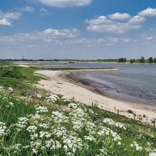 Radeln durch eine raue Flusslandschaft mit Poldern, Altwassern, Buchten, Flussdünen, blumenreichen Wiesen, wilder Ufervegetation und naturbelassenen Flussstränden.