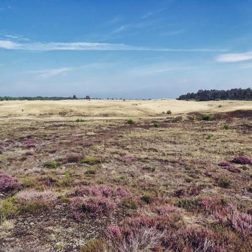 Die Landschaft rund um den Nationalpark De Hoge Veluwe ist genauso faszinierend wie der Park selbst. Im Norden und Westen erwarten dich weite Heideflächen, wandernde Sandverwehungen und Wälder, die nahtlos in andere Naturschutzgebiete der Veluwe übergehen. Diese Gegenden sind ruhiger als der Park, aber nicht weniger eindrucksvoll. Im Süden und Osten verändert sich das Bild: Neben sanft geschwungener Heide und stillen Wäldern treffen Sie hier auch auf eine vom Menschen geprägte Kulturlandschaft mit alten Alleen, stattlichen Baumreihen, Äckern und Wiesen. Diese Region war früher bei wohlhabenden Familien beliebt, die hier ihre Landsitze und parkähnlichen Anwesen errichteten.