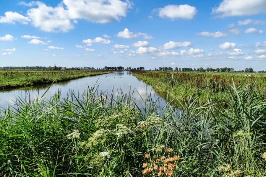 Radeln Sie durch die Zaanstreek und entlang der Zaanse Schans und erleben Sie eine typisch holländische Moorwiesenlandschaft voller Wasser und Geschichte. Sie fahren entlang von Gräben mit Kopfweiden und wiegenden Schilfgürteln, vorbei an weiten Wiesen, auf denen Kühe ruhig grasen. Drehende Windmühlen und traditionelle Holzhäuser setzen unterwegs markante Höhepunkte, sodass diese Fahrradroute Natur, Poldergefühl und Zaanser Kulturerbe auf schöne Weise verbindet.